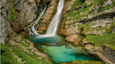 Air Terjun Pericnik terletak di Taman Nasional Triglav dan terkenal dengan dua tingkat keindahannya. Pengunjung dapat menikmati pemandangan dari bawah maupun berjalan di belakang air terjun untuk pengalaman yang lebih mendalam. Waktu terbaik untuk mengunjungi adalah saat musim semi ketika aliran air paling deras. Pastikan membawa kamera untuk menangkap momen indah ini.