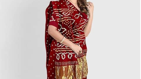 Busana modern dengan tekstil Bandhani abadi