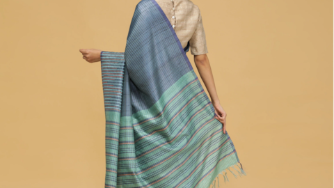 Dalam gaya Gujarati, pallu dilemparkan dari belakang ke depan melewati bahu kanan lalu disematkan di bagian depan dada. Ini menciptakan lipatan dramatis di bagian depan sari, memberikan kesan mewah sekaligus memamerkan desain bordir pada pallu dengan jelas. Dengan mencoba berbagai gaya draping ini, Anda dapat mengeksplorasi sisi berbeda dari warisan budaya India sambil tetap tampil modis dan elegan dalam balutan sari Anda.