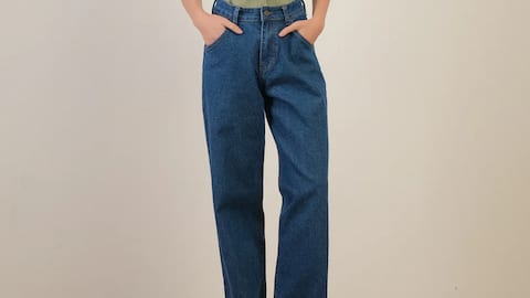 Gaya musim dingin dengan celana denim jahitan kontras