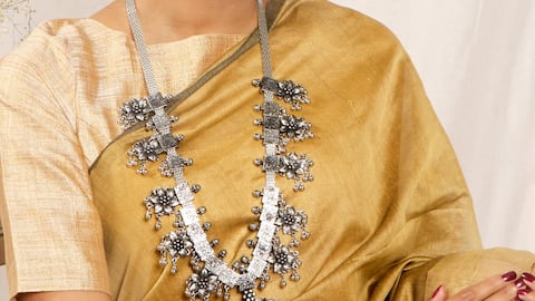 Kilauan metalik dalam busana malam India