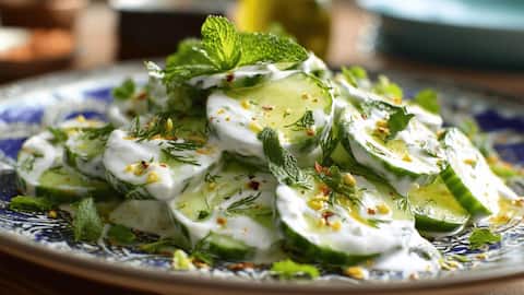 Salad mentimun dengan yogurt adalah hidangan segar dan ringan yang cocok untuk cuaca panas. Potong mentimun tipis-tipis dan campurkan dengan yogurt tawar, sedikit garam, dan daun mint cincang. Hidangan ini tidak hanya mudah dibuat tetapi juga memberikan rasa segar dari kombinasi mentimun dan yogurt. ambahkan sedikit perasan lemon untuk memberikan sentuhan asam yang menyegarkan pada salad ini.