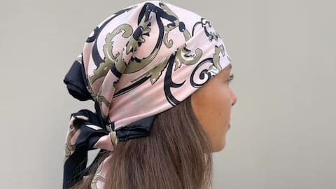 Menggunakan bandana sutra sebagai aksesori rambut dapat memberikan tampilan yang cantik dan rapi. Cukup lipat bandana menjadi bentuk segitiga dan ikat di sekitar kepala Anda, dengan ujungnya diikat di bawah dagu atau dahi. Ini tidak hanya menjaga rambut tetap rapi tetapi juga menambah warna dan tekstur pada penampilan Anda.