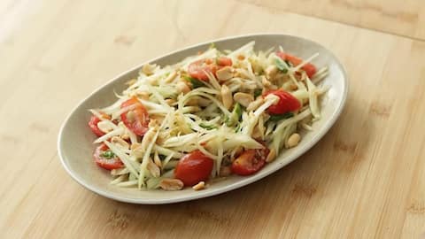 Salad pepaya muda segar adalah pilihan sehat dan menyegarkan untuk hidangan pembuka atau penutup. Iris tipis-tipis pepaya muda dan campurkan dengan irisan mentimun, wortel parut, serta daun ketumbar segar. Siram dengan saus dari campuran air jeruk nipis, gula pasir, dan sedikit garam untuk menambah kesegaran rasa.