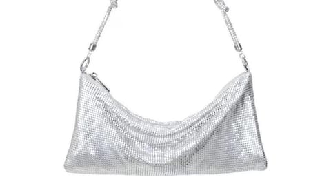 Untuk tampilan yang lebih segar dan modern, pilihlah tas jala metalik berwarna perak. Warna perak memberikan kesan futuristik namun tetap elegan, cocok dipadukan dengan gaun malam atau lehenga ringan. Tas ini dapat menjadi aksen menarik dalam penampilan Anda tanpa mengalihkan perhatian dari keseluruhan busana.