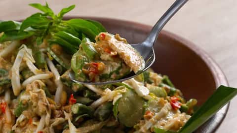 Karedok adalah salad sayuran khas Sunda yang disiram dengan bumbu kacang pedas khas tanpa tambahan susu atau produk hewani lainnya. Kombinasi sayuran segar seperti kacang panjang, tauge, kol, dan mentimun memberikan sensasi segar setiap gigitan. Karedok ini sangat cocok bagi mereka yang mencari hidangan sehat namun tetap lezat.