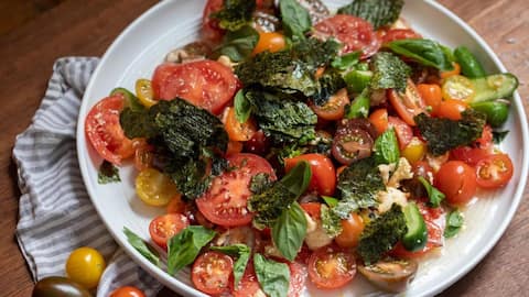 Salad rumput laut dengan saus kacang adalah perpaduan sempurna antara kesegaran sayuran dan kekayaan rasa kacang tanah. Campurkan potongan kecil-kecil dari berbagai sayuran segar seperti mentimun dan tomat ceri dengan rumput laut kering yang sudah direndam air hangat. Siramkan saus kacang buatan sendiri di atasnya sebelum disajikan untuk menambah cita rasa gurih.