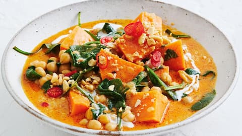 Kari adalah hidangan berkuah kental khas Asia Selatan yang sering menggunakan berbagai jenis sayuran atau kacang-kacangan sebagai bahan utama. Kari ubi jalar menggabungkan potongan ubi jalar dengan santan kental serta rempah-rempah seperti kunyit, jintan, dan ketumbar untuk menciptakan rasa gurih manis nan lezat.