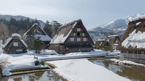 Shirakawa-go adalah desa bersejarah yang terkenal dengan rumah-rumah gassho-zukuri, yaitu rumah tradisional beratap jerami tebal. Desa ini terdaftar sebagai Situs Warisan Dunia UNESCO dan menawarkan pemandangan musim dingin yang memesona saat salju menutupi atap-atap rumahnya. Nikmati suasana pedesaan sambil berjalan-jalan atau menginap di salah satu penginapan tradisional.