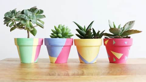 Menghias Pot Tanaman dengan Pola Seni Abstrak Buatan Tangan