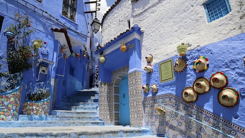 Chefchaouen, meskipun terletak di Maroko, sering kali dikaitkan dengan Eropa karena gaya arsitekturnya yang unik. Kota ini terkenal dengan jalan-jalan sempitnya yang dipenuhi rumah-rumah bercat biru. Warna biru dipercaya membawa ketenangan dan kedamaian bagi penduduk setempat. Berjalan-jalan di Chefchaouen memberikan pengalaman visual yang menenangkan serta kesempatan untuk menikmati kerajinan lokal.
