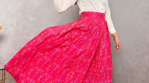 Untuk mendapatkan tampilan terbaik dengan rok bandhani, padukan dengan atasan sederhana seperti blus putih atau kemeja polos agar tidak mengalihkan perhatian dari pola indah pada rok tersebut. Tambahkan aksesori minimalis seperti gelang atau anting-anting kecil agar tetap terlihat anggun tanpa berlebihan. Pilih sepatu datar atau sandal tradisional untuk melengkapi penampilan Anda secara keseluruhan.
